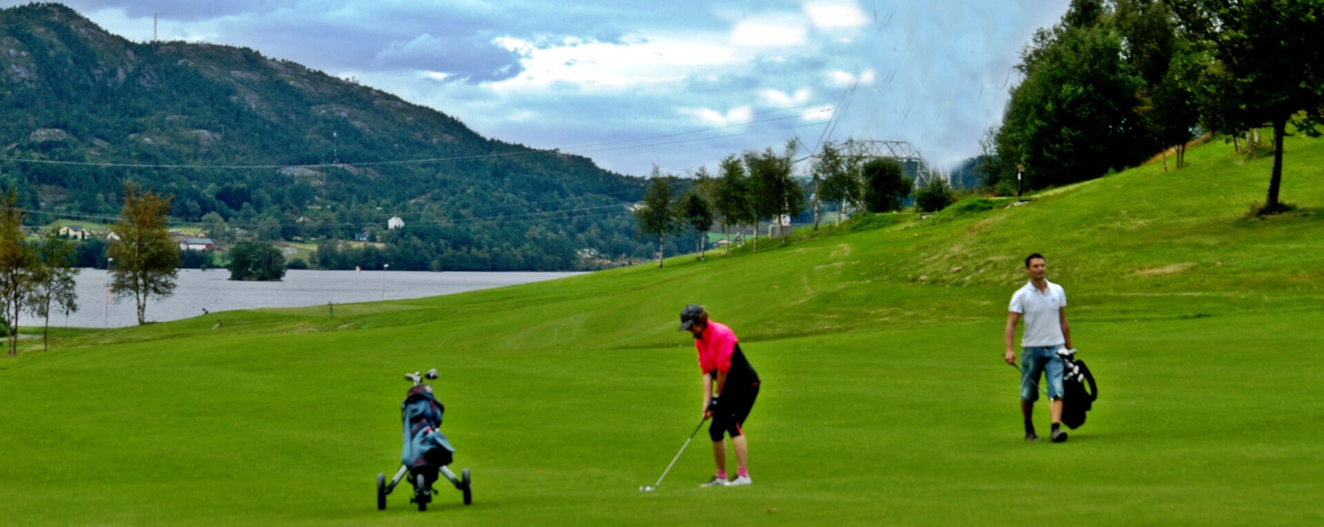 Grøne, flotte fairways og greenar skapar vakre kontrastar til landskapet rundt.
