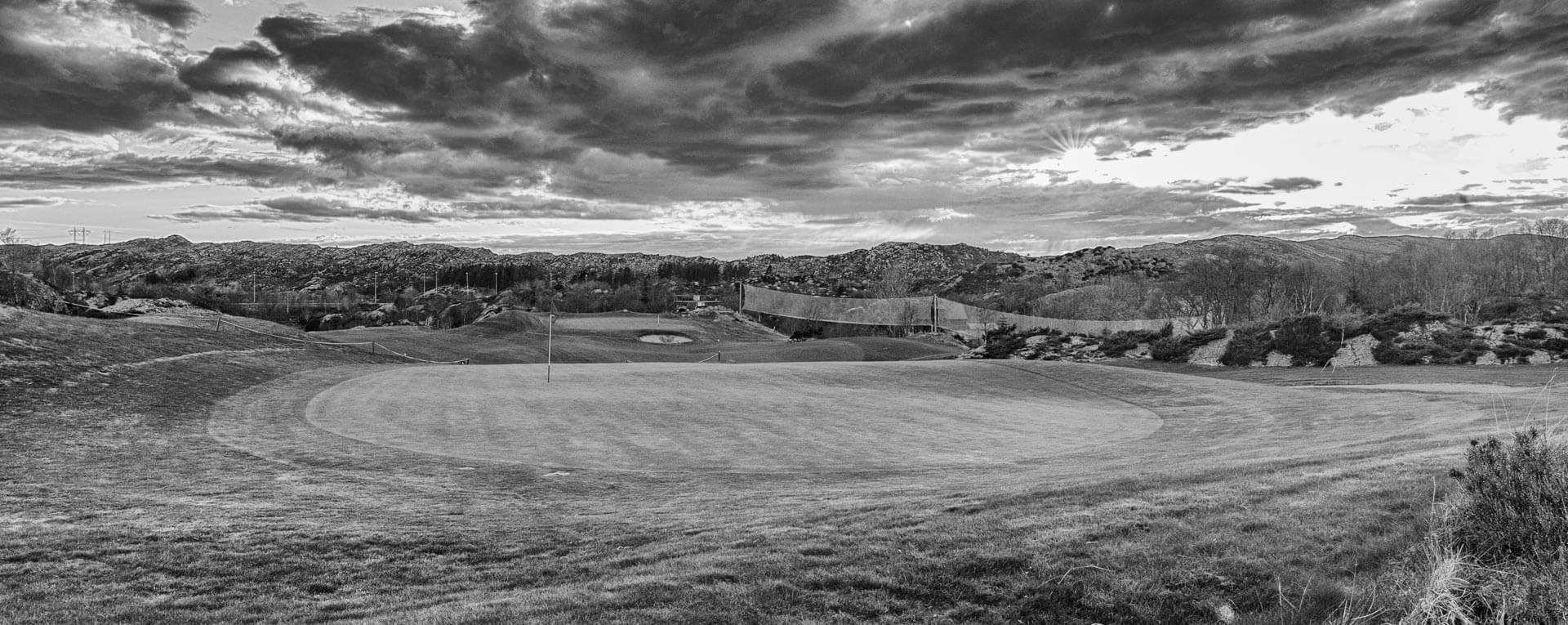 Hovedbanen er en ni hulls golfbane med tre par 4 hull og seks par 3. Det innebærer meget gode muligheter til å spille seg frem til å bli en bedre golfer samtidig som du har tid til andre sysler da ni hull gjøres unna på ca 1,5 time. Vi har lagt vekt på å lage en bane med store flotte greener med automatisk vanningsanlegg for å kunne opprettholde den gode kvaliteten.